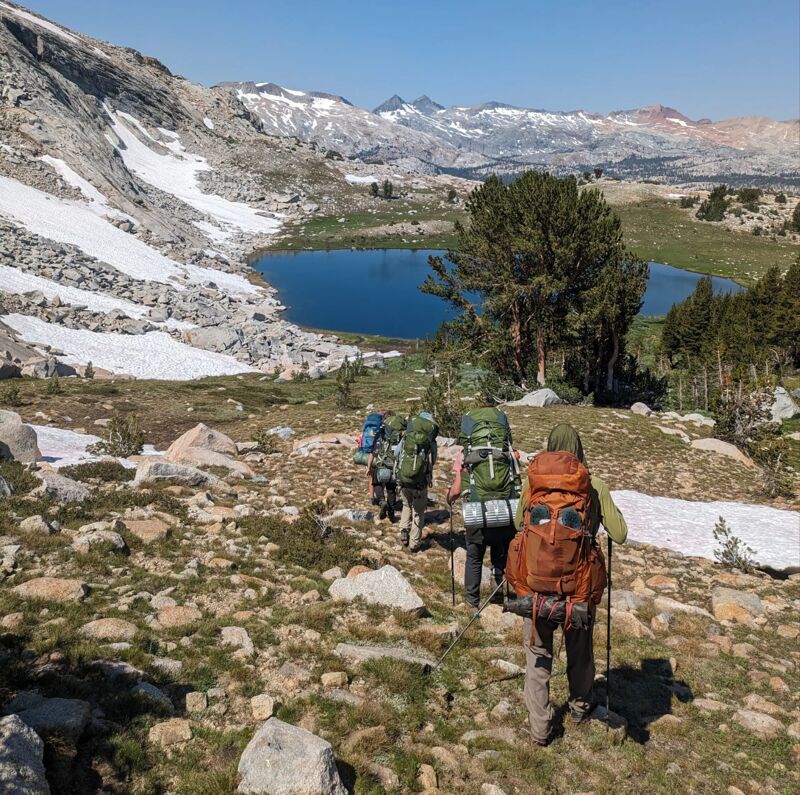 | Day 7 | Front country resupply of food and gear and service project |